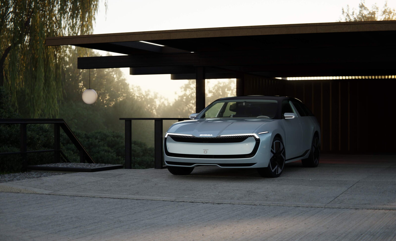 De buitenkant van de Vision O straalt karakter uit door de evolutie van Škoda's Modern Solid-designtaal, met strakke, eenvoudige lijnen en een stevige Tech-Loop Face als blikvanger.
